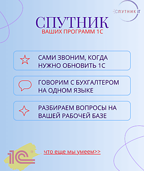 ООО "Спутник Айти" - официальный партнер фирмы 1С. Помогаем автоматизировать бизнес-процессы малых и средних предприятий с помощью программных продуктов 1С.