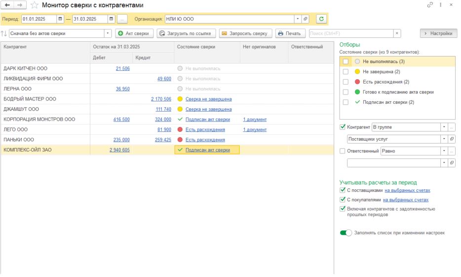 - проводить сверку и вносить корректировки можно в любой момент, не дожидаясь окончания периода (месяца или квартала), что позволяет исправлять ошибки без спешки и в удобном режиме;