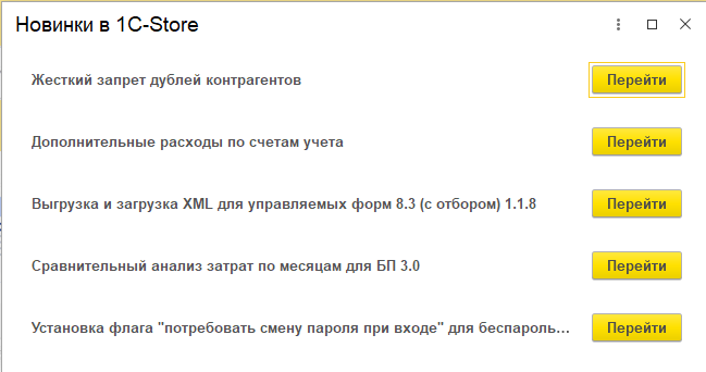 При первом запуске маркетплейса пользователь видит окно с новинками — среди них часто встречаются актуальные отчёты по затратам и доходам.